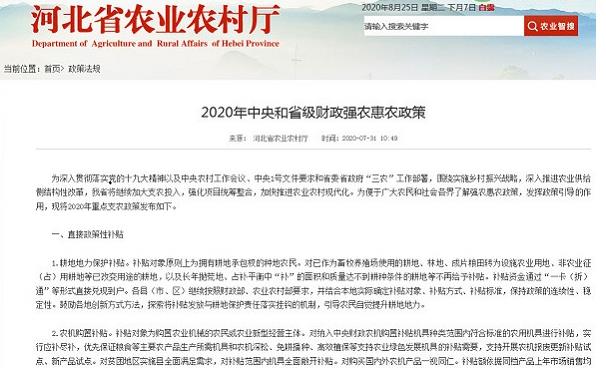 2020年中央和省級財政強農惠農政策